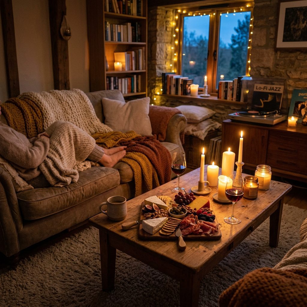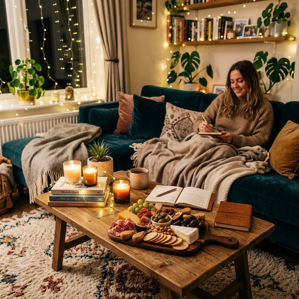 Start with lighting. Dim lights, candles, or fairy lights instantly create a warm and inviting vibe. Avoid harsh white lighting, as it takes away from the cozy feeling.
